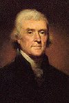 In the thick of party conflict in 1800, Thomas Jefferson wrote in a private letter, "I have sworn upon the altar of God eternal hostility against every form of tyranny over the mind of man." This powerful advocate of liberty was born in 1743 in Albermarle County, Virginia, inheriting from his father, a planter and surveyor, some 5,000 acres of land, and from his mother, a Randolph, high social standing. He studied at the College of William and Mary, then read law. In 1772 he married Martha Wayles Skelton, a widow, and took her to live in his partly constructed mountaintop home, Monticello. Freckled and sandy-haired, rather tall and awkward, Jefferson was eloquent as a correspondent, but he was no public speaker. In the Virginia House of Burgesses and the Continental Congress, he contributed his pen rather than his voice to the patriot cause. As the "silent member" of the Congress, Jefferson, at 33, drafted the Declaration of Independence. In years following he labored to make its words a reality in Virginia. Most notably, he wrote a bill establishing religious freedom, enacted in 1786. Jefferson succeeded Benjamin Franklin as minister to France in 1785. His sympathy for the French Revolution led him into conflict with Alexander Hamilton when Jefferson was Secretary of State in President Washington's Cabinet. He resigned in 1793. Sharp political conflict developed, and two separate parties, the Federalists and the Democratic-Republicans, began to form. Jefferson gradually assumed leadership of the Republicans, who sympathized with the revolutionary cause in France. Attacking Federalist policies, he opposed a strong centralized Government and championed the rights of states. As a reluctant candidate for President in 1796, Jefferson came within three votes of election. Through a flaw in the Constitution, he became Vice President, although an opponent of President Adams. In 1800 the defect caused a more serious problem. Republican electors, attempting to name both a President and a Vice President from their own party, cast a tie vote between Jefferson and Aaron Burr. The House of Representatives settled the tie. Hamilton, disliking both Jefferson and Burr, nevertheless urged Jefferson's election. When Jefferson assumed the Presidency, the crisis in France had passed. He slashed Army and Navy expenditures, cut the budget, eliminated the tax on whiskey so unpopular in the West, yet reduced the national debt by a third. He also sent a naval squadron to fight the Barbary pirates, who were harassing American commerce in the Mediterranean. Further, although the Constitution made no provision for the acquisition of new land, Jefferson suppressed his qualms over constitutionality when he had the opportunity to acquire the Louisiana Territory from Napoleon in 1803. During Jefferson's second term, he was increasingly preoccupied with keeping the Nation from involvement in the Napoleonic wars, though both England and France interfered with the neutral rights of American merchantmen. Jefferson's attempted solution, an embargo upon American shipping, worked badly and was unpopular. Jefferson retired to Monticello to ponder such projects as his grand designs for the University of Virginia. A French nobleman observed that he had placed his house and his mind "on an elevated situation, from which he might contemplate the universe." He died on July 4, 1826 on the 50th anniversary of American Independence. |