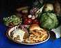 Examples of dishes from each region. Rome : abbacchio (suckling lamb in white wine flavoured with rosemary), cannelloni (pasta stuffed with meat, calves' brains, spinach, egg and cheese), broccoli romani (broccoli in white wine), salsa romana (sweet-sour brown sauce with raisins, chestnut and lentil purée served with game) and gnocchi alla romana (semolina dumplings). Of Rome's cheeses the best include mozzarella, caciotta romana (semi-hard, sweet sheep cheese), pecorino (hard, sharp sheep's milk cheese) and gorgonzola. Piemonte : bagna caoda (a traditional anchovies soup, served with vegetables), fritto misto piemontese (fried meat, vegetables and fruit). Valle d'Aosta : fonduta (a hot dip with Fontina cheese, milk and egg yolks sprinkled with truffles and white pepper), lepre piemontese (hare cooked in Barbera wine and sprinkled with herbs and bitter chocolate), zabaglione (hot dessert with beaten egg and Marsala wine). Lombardy : risotto alla milanese (rice with saffron and white wine), zuppa pavese (tasty clear soup with poached eggs), minestrone (thick soup with chopped vegetables), osso buco (shin of veal cooked in tomato sauce served with rice), panettone (Christmas cake with sultanas and candied fruit). Sicily : pesce spada (swordfish stuffed with brandy, mozzarella and herbs, grilled on charcoal), pasta con le sarde (pasta with fresh sardines), caponata (rich dish of olives, anchovies and aubergines) |