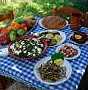 Dishes like dolmades (stuffed vine leaves), moussaka (eggplant casserole with minced lamb, cinnamon, red wine and olive oil), kebabs and avgolemono (chicken broth with rice, eggs, salt and lemon juice) can be found everywhere. Taramosalata (a dip made from fish roe, bread, onion, olice oil and lemon juice) and a variety of seafood dishes, especially squid (kalamari) or octopus, are excellent. Greek menus typically include a selection of meze (appetisers), such as keftedes (hot spicy meatballs) or tzatziki (a dip made from yoghurt, olive oil, garlic, shredded cucumber and dill). Salads are excellent and often made with the local feta cheese, tomato, cucumber and fresh olive oil. Other vegetarian specialities include gigantes (large white beans), kolokithakia (small boiled zucchini with oil and lemon). Olives are cheap and plentiful. Deserts, such as baklavas (filo pastry filled with almonds and topped with honey, vanilla and sugar) or loukoumades (honey-drenched pastry puffs) are sweet and filling. |